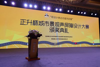 頒獎(jiǎng)典禮現(xiàn)場,四川省環(huán)境保護(hù)宣教處副處長兼宣教中心主任曹小佳、四川省環(huán)境保護(hù)產(chǎn)業(yè)協(xié)會(huì)副會(huì)長邵志軍、正升環(huán)境科技股份有限公司董事長分別致辭。曹小佳表示“正升杯”城市景觀聲屏障設(shè)計(jì)大賽的開展,帶給成都乃至四川新的道路聲屏障思路及感悟,同時(shí)為政府今后開展噪聲污染防治工作提供了更多的方案,為政府和企業(yè)合力治理城市聲環(huán)境搭建了良好的平臺(tái)。李朝陽董事長則表達(dá)了對(duì)未來道路噪聲治理的期許,即“城市大道,靜美不言”。